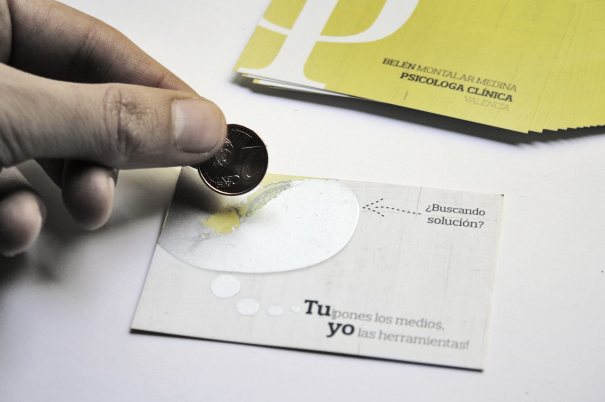 Para ello utilizamos un sistema en el cual, el paciente que recibe una tarjeta (o potencial cliente) tiene que interactuar desde un primer momento para descubrir los datos de contacto. Este proceso, simboliza el primer paso que debe seguir un paciente para la cura; Ser consciente de que tiene un problema, querer solucionarlo y poner de su parte.